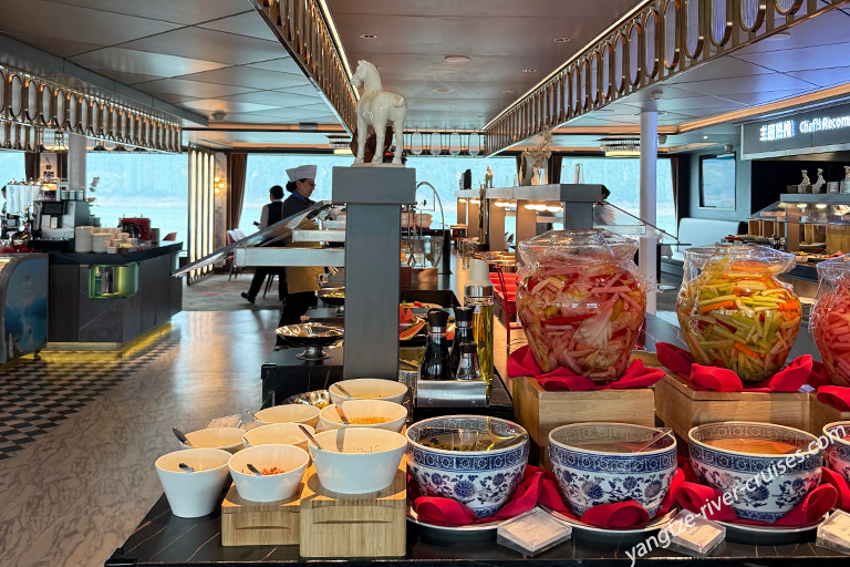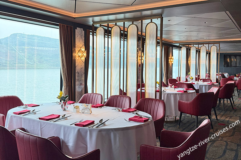 The second-floor restaurant was already half-full. On the tables: safety manuals, lift lock introductions, VIP dining upgrade prices (¥398 per person). I handed over my ID and waited—this feeling of being taken care of is something land travel rarely offers.
