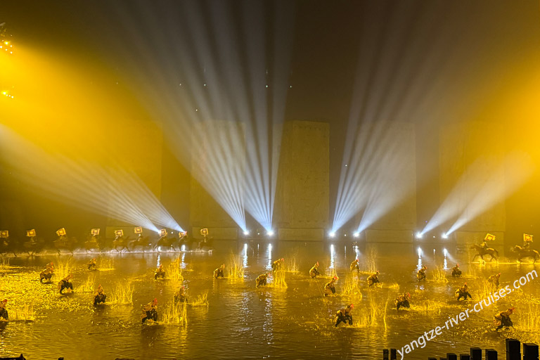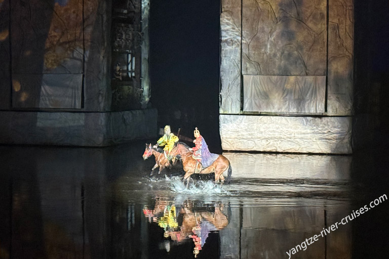 Lights. Fire and water effects. Real horses galloping past. When Guan Yu on his Red Hare horse thundered by, goosebumps rose on my arms. This wasn't "since we're here" entertainment. This was "thank god we came" spectacle.
