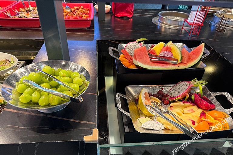 Dinner was buffet-style. The main restaurant occupies the second and third floors (third floor only in low season). The selection was simpler than I'd expected—maybe 8-10 hot dishes, split between Chinese and Western, with only 2-3 basic wine options. Peak hours were noisy; securing a table required quick reflexes.