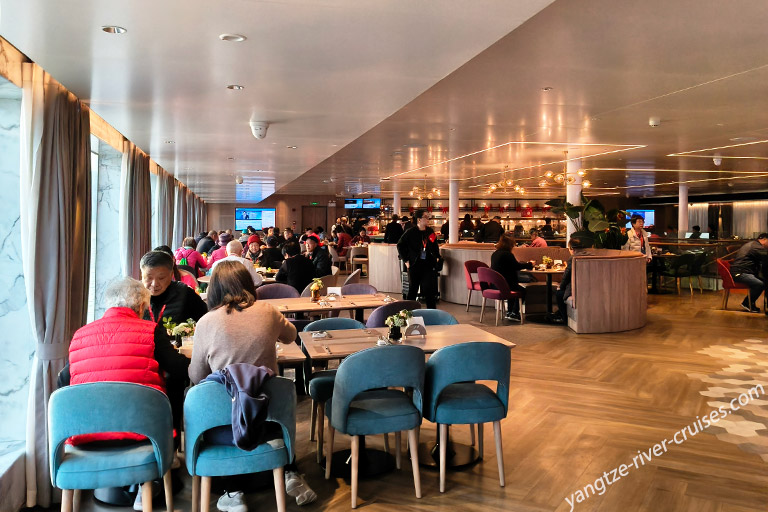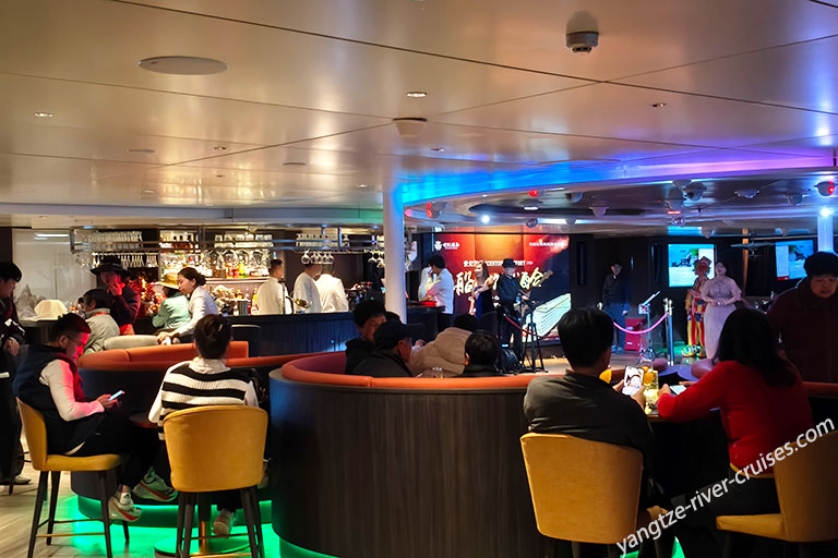 Tonight, the ship hosts staff cultural performances—singing, dancing, traditional instruments. But I choose quiet: a book in the 5th-floor Xunyan Book House, then a nightcap at the Cheers Bar. The ship has become my floating neighborhood. I know where to find good coffee, quiet corners, and the best sunset angles.