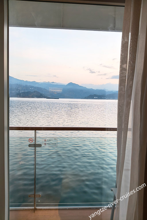 Back on board, we finally sail. The moment the ship enters Xiling Gorge, I understand why I chose the upstream journey. Five days means slower currents, more time, deeper relaxation. The ship glides through the western section of the gorge while I linger on my balcony, coffee in hand, cliffs rising on both sides.