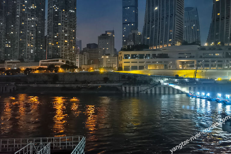 One last buffet—one last morning of not deciding what's for breakfast, not packing, not rushing. The ship glides past Chongqing's expanding skyline, the mountains giving way to towers.