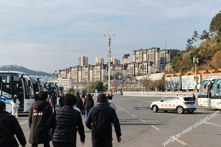 My train pulled into Yichang East Station at 14:30, leaving me a comfortable buffer before the cruise shuttle. Here's what you need to know: Century Victory offers complimentary "Luxury Cruise Shuttle Buses" from both Yichang East Station and the Three Gorges Visitor Center between 17:30-20:00. The journey to Maoping Port takes roughly 1.5 hours through tunnel after tunnel, mountain range after mountain range—a preview of the dramatic terrain ahead.