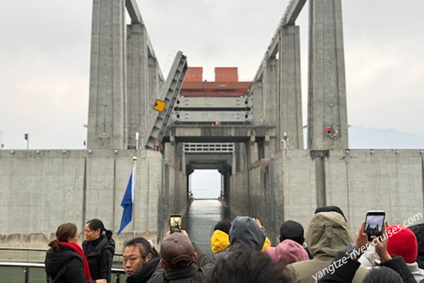 Valerie especially recommended the Three Gorges Dam ship lift add-on—the world's largest and most technically challenging vertical ship lift, using hydraulic systems to lift 10,000-ton vessels 113 meters vertically, taking about 30 minutes, known as the "ship elevator". As the cruise ship entered the ship chamber, the downstream gate closed, and the chamber slowly rose until level with the upstream reservoir—Valerie described this as "what an experience!"